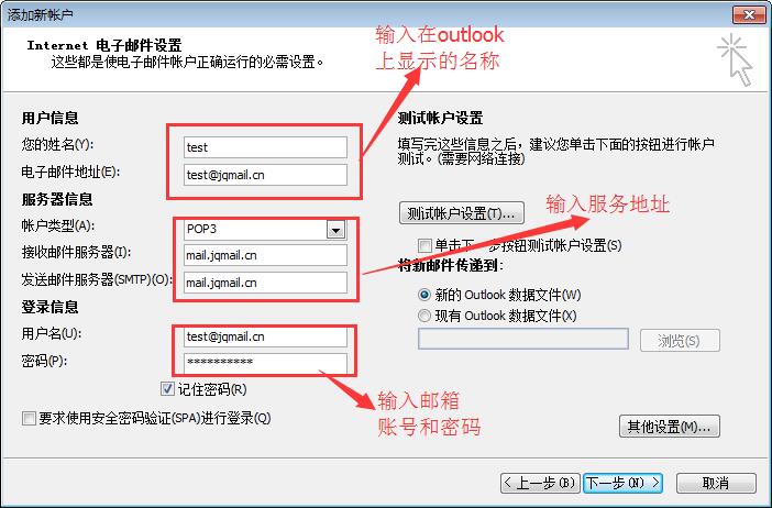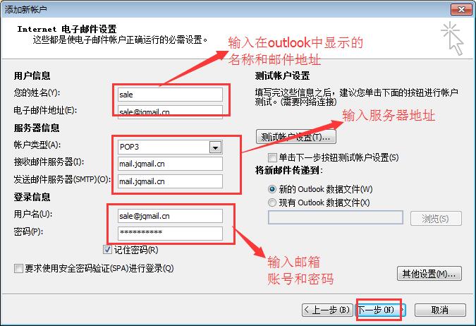 3、設置賬戶、密碼和(hé)服務器(qì)地(dì)址。
