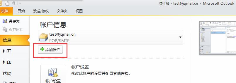 1、在文(wén)件(jiàn)--信息---添加賬戶。