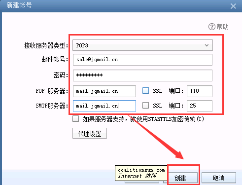 3、設置賬戶、密碼和(hé)服務器(qì)地(dì)址。