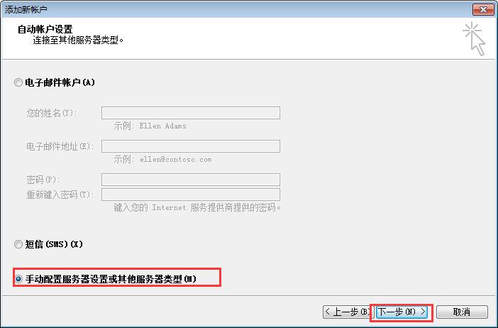 2、選擇手動配置服務器(qì)設置或其他(tā)服務器(qì)類型。